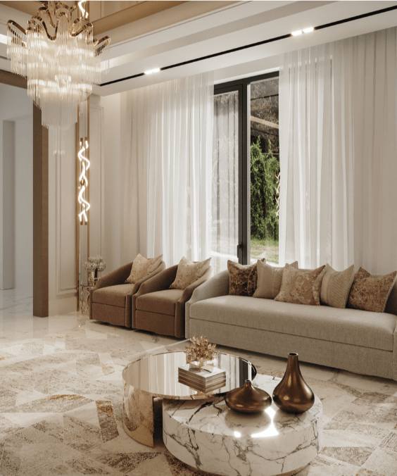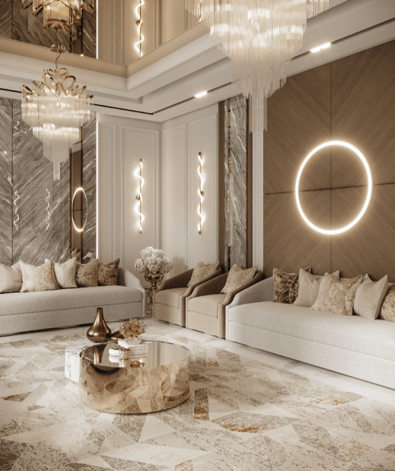 Experience the timeless beauty of a traditional Majlis with our carefully crafted interior design. Our expert designers blend luxurious details with cultural richness, creating a warm and inviting space perfect for gathering and relaxation.